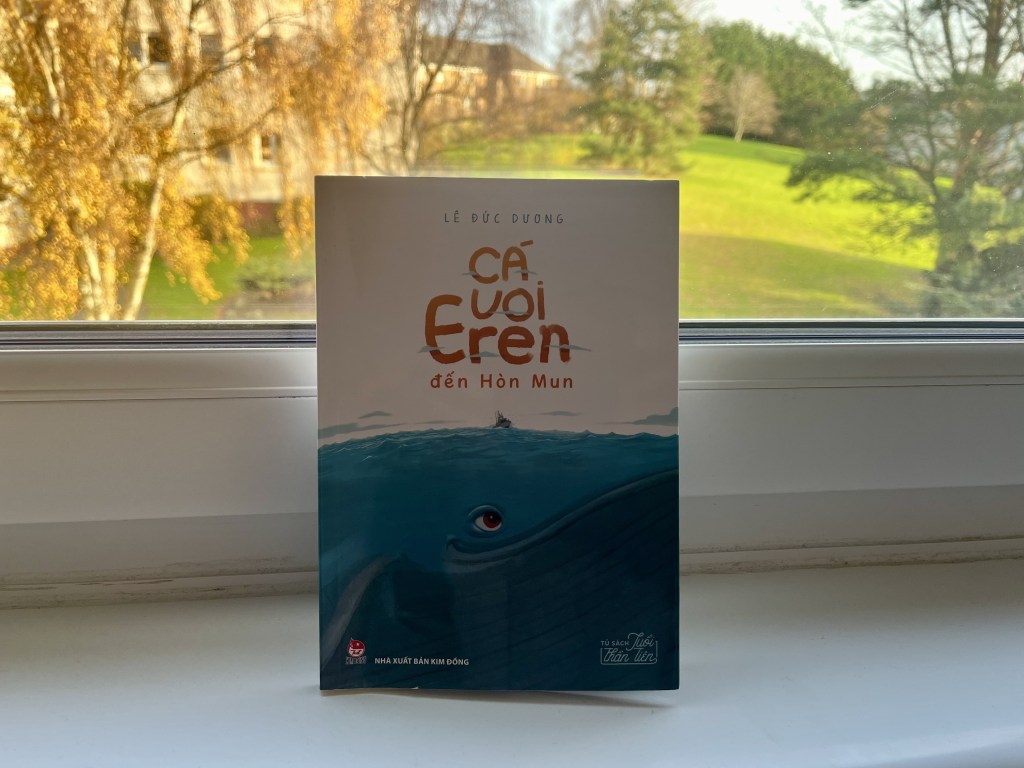 Cá voi Eren đến Hòn Mun, tác giả: Lê Đức Dương, NXB Kim Đồng. Sách dày 127 trang, dành cho độ tuổi 6+, là quyển sách đầu tiên chỉ có chữ, không có hình mình vừa cùng con đọc xong.