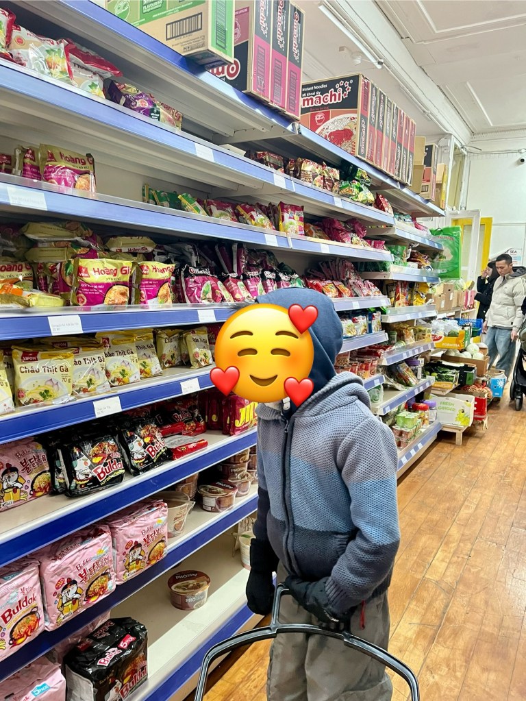 Cuối tuần trước Tết, nhà mình cũng đi tàu sang thành phố lân cận để đi một cửa hàng Việt Nam mua sắm Tết. Thành phố của mình nhỏ nên không có cửa hàng Việt, mặc dù có thể đặt đồ ăn online nhưng mình chọn đến tiệm trực tiếp mua, mẹ mình bảo là “Ăn một bát cháo chạy qua quãng đồng”, nhưng mục đích là để có thêm hoạt động Tết cho con, chứ đặt online thì con chẳng tham gia vào được. Mình nói con tên của tiệm, hôm đó gần đến thì mình bảo con tìm giúp mẹ nha, con chăm chú nhìn biển hiệu, nhận ra được tên tiệm thì reo lên, vui lắm.
